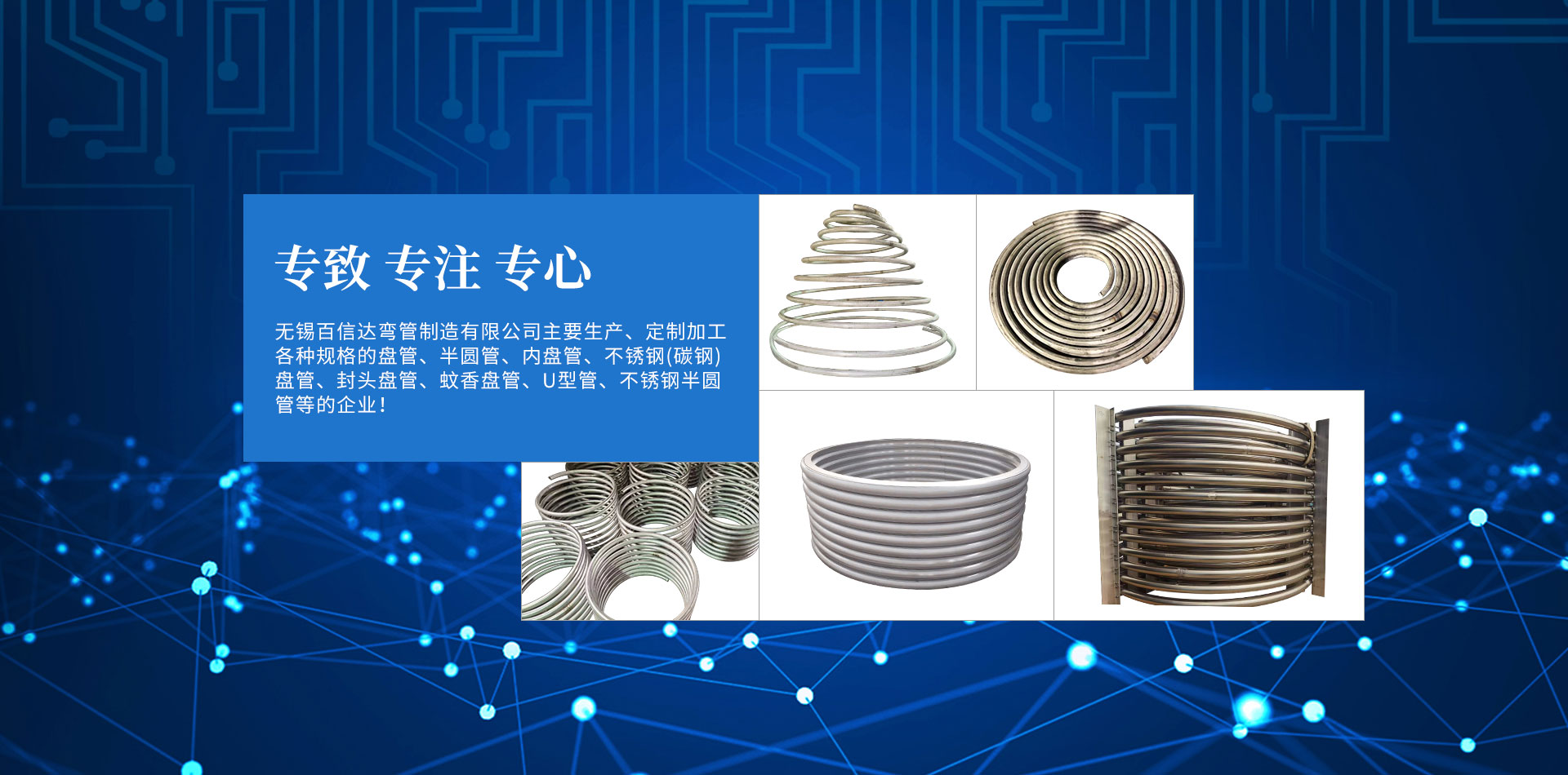 無錫百信達彎管制造有限公司位于經(jīng)濟發(fā)達、風景秀麗的太湖之濱。本公司擁有完整、科學的質(zhì)量管理體系,公司的誠信、實力和產(chǎn)品質(zhì)量獲得業(yè)界的認可。公司專注生產(chǎn)、定制加工各種規(guī)格的盤管、半圓管、內(nèi)盤管、不銹鋼盤管、封頭盤管、蚊香盤管、U型管、不銹鋼半圓管、碳鋼盤管等的企業(yè)。本公司設計加工的彎管設備,質(zhì)量精良、結(jié)構(gòu)合理,效率高、操作簡易、經(jīng)久耐用。公司已經(jīng)承接了各地多個大型場館工程項目的彎管加工,屢次得到了多家大客戶的好評。努力滿足客戶的需要,不斷提高自身水平是公司追求的目標。歡迎社會各界朋友蒞臨無錫百信達彎管制造有限公司參觀、指導和業(yè)務洽談!